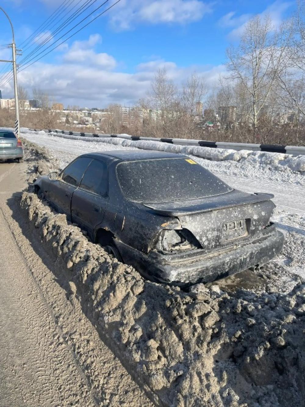 На мосту Сибиряков-Гвардейцев, в Кировском районе г. Новосибирска длительное время без движения расположено транспортное средство HONDA INSPIRE без государственного регистрационного знака, которое подлежит перемещению на специализированную стоянку в соответствии с постановлением мэрии города Новосибирска от 10.04.2024 № 2513 «О порядке выявления, перемещения и хранения бесхозяйных транспортных средств на территории города Новосибирска».