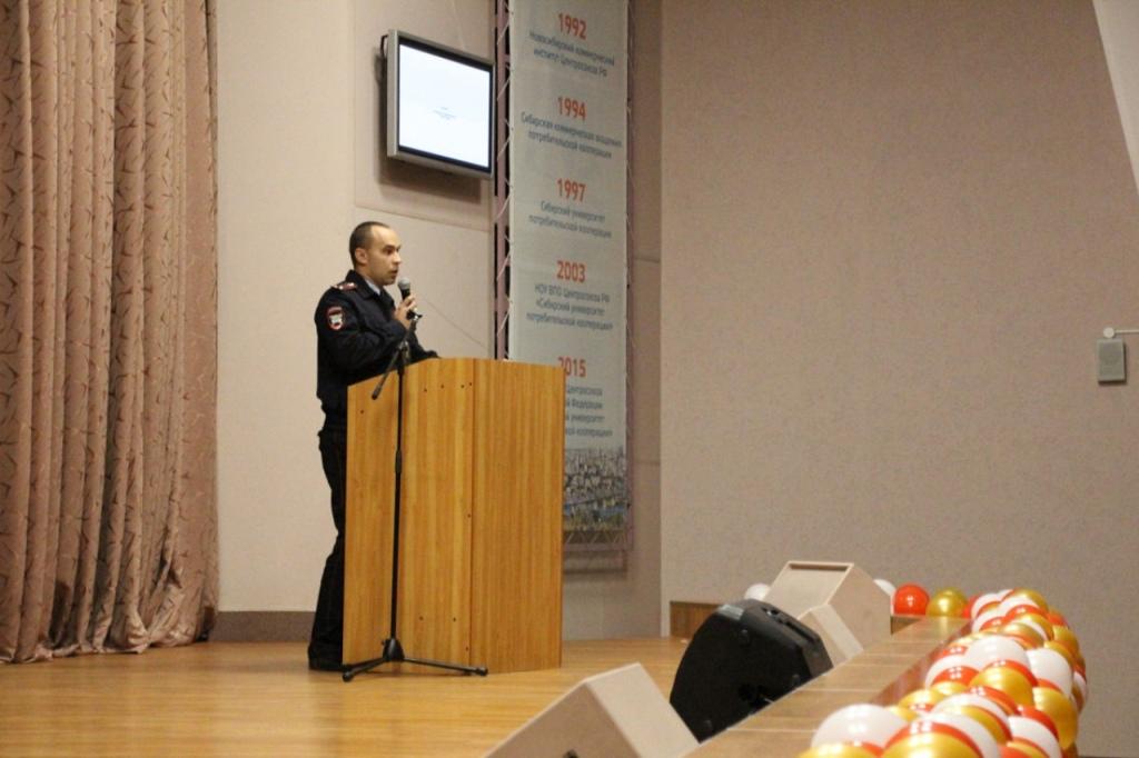 Сотрудники Госавтоинспекции Новосибирска проводят профилактические мероприятия в техникумах и колледжах Автоинспекторы рассказывают о причинах и последствиях аварий, напоминают о правилах дорожного движения, показывают тематические фильмы Сотрудники Госавтоинспекции Новосибирска побывали в Новосибирском университете потребительской кооперации, где побеседовали со студентами о безопасности дорожного движения, провели викторину по правилам дорожного движения, показали тематические фильмы. Гости отметили, что в текущем году в Новосибирске несколько снизилось количество дорожно-транспортных происшествий. Вместе с тем уровень аварийности остается довольно высоким: за 9 месяцев в городе в ДТП пострадало около 1000 человек, 40 из которых погибли. Сотрудники Госавтоинспекции обратили внимание на высокий уровень аварийности с участием молодежи. В настоящее время доля погибших в дорожных авариях людей в возрасте 18-24 года составляет около 25%. Основными причинами таких происшествий являются: сознательное нарушение молодежью правил дорожного движения, слабая водительская подготовка, различные отвлечения во время движения, в том числе разговоры по мобильным телефонам, использование наушников для прослушивания музыки. Автоинспекторы напомнили, что пешеходы должны пересекать проезжую часть по пешеходным переходам. Перед выходом на проезжую часть необходимо убедиться в безопасности перехода. В тёмное время суток пешеходам рекомендуется иметь при себе предметы со световозвращающими элементами. В текущем году сотрудники Госавтоинспекции Новосибирска побывают во всех городских техникумах, колледжах и высших учебных заведениях. Группа пропаганды Госавтоинспекции Новосибирска