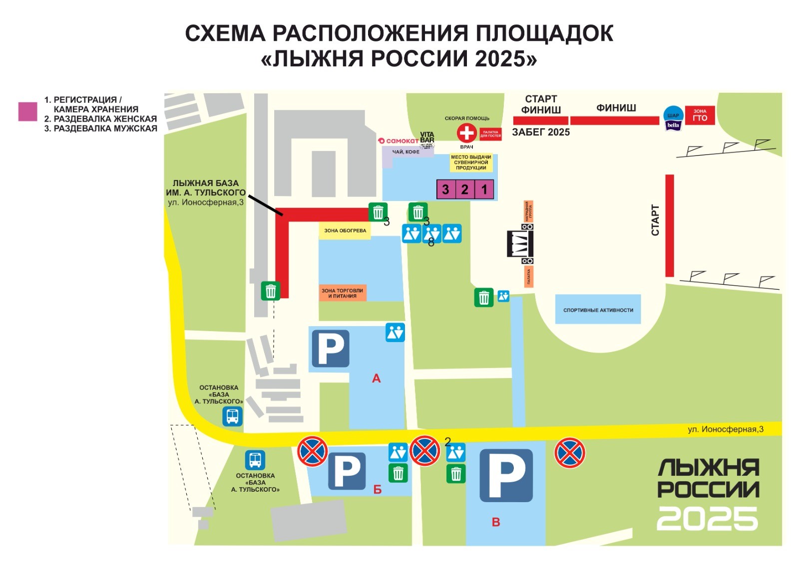 После прибытия на станцию «Сеятель» автобус с афишей «Лыжня России — 2025» довезет участников до места проведения соревнований.